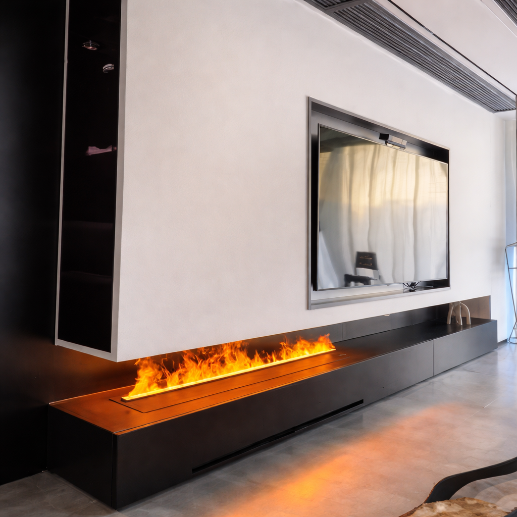 Whether you're building a new media wall or upgrading your living space, the Luxe Water Vapor Fireplace brings the atmosphere of a real fire without the limitations. It’s modern, safe, innovative and truly captivating.